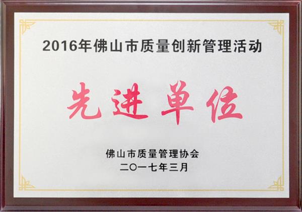我司被評(píng)為“2016年佛山市質(zhì)量創(chuàng)新管理活動(dòng)先進(jìn)單位”